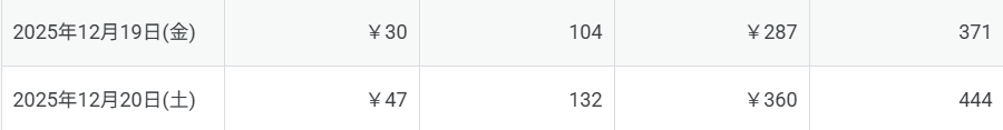 今日は2025年12月20日のアフィリエイト報酬結果を書きます。