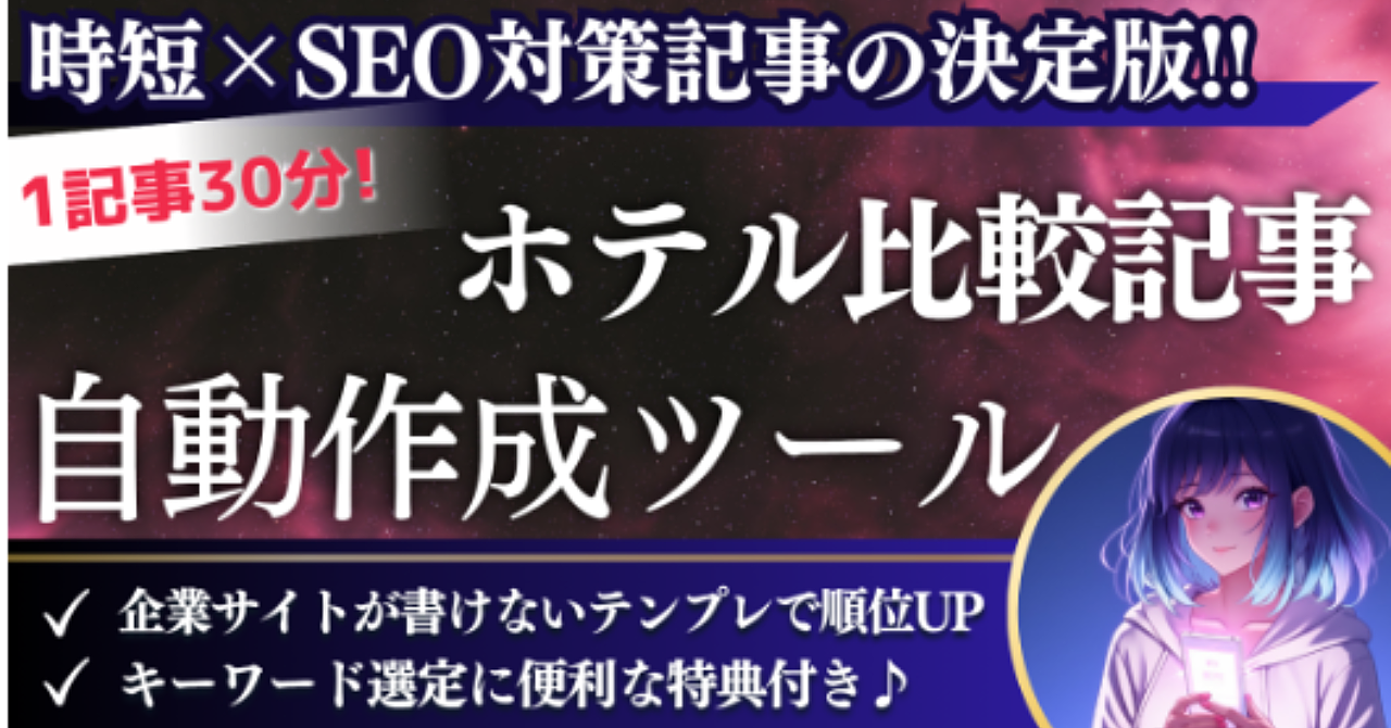 正直、旅行は好きだけど「記事を書くのが面倒」で止まっていた私を動かしてくれたのが、この【AI丸投げで完成するズルいホテル記事テンプレ】です。使い方は驚くほど簡単で、行き先やテーマを入れるだけ。あとはAIがホテル選定から構成、文章まで一気に仕上げてくれます。